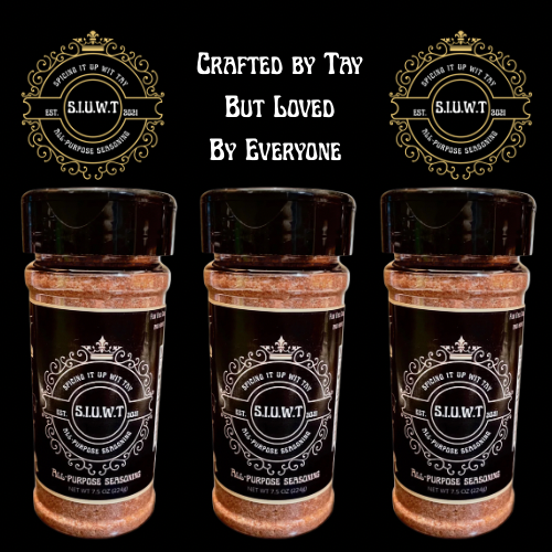 Meet Spicing It Up Wit TAY (S.I.U.W.T)—a family-built Alabama brand shaking up kitchens since 2021. Our handcrafted blend of herbs and spices is made to wake up your taste buds and transform ordinary meals into flavor-packed favorites. One taste and you’ll understand why we say our seasoning is one of the best out there. Trust us… your food will thank you.